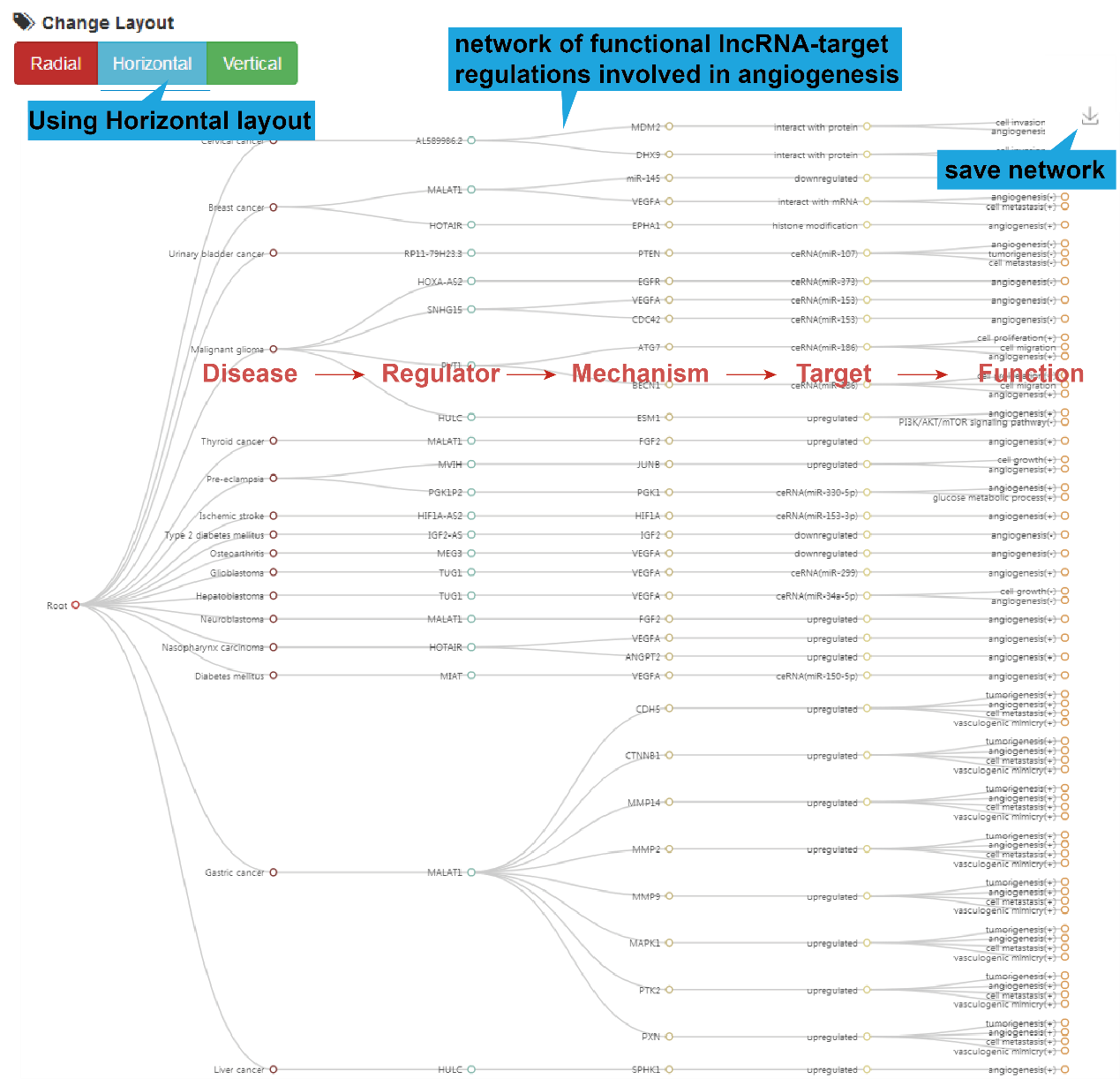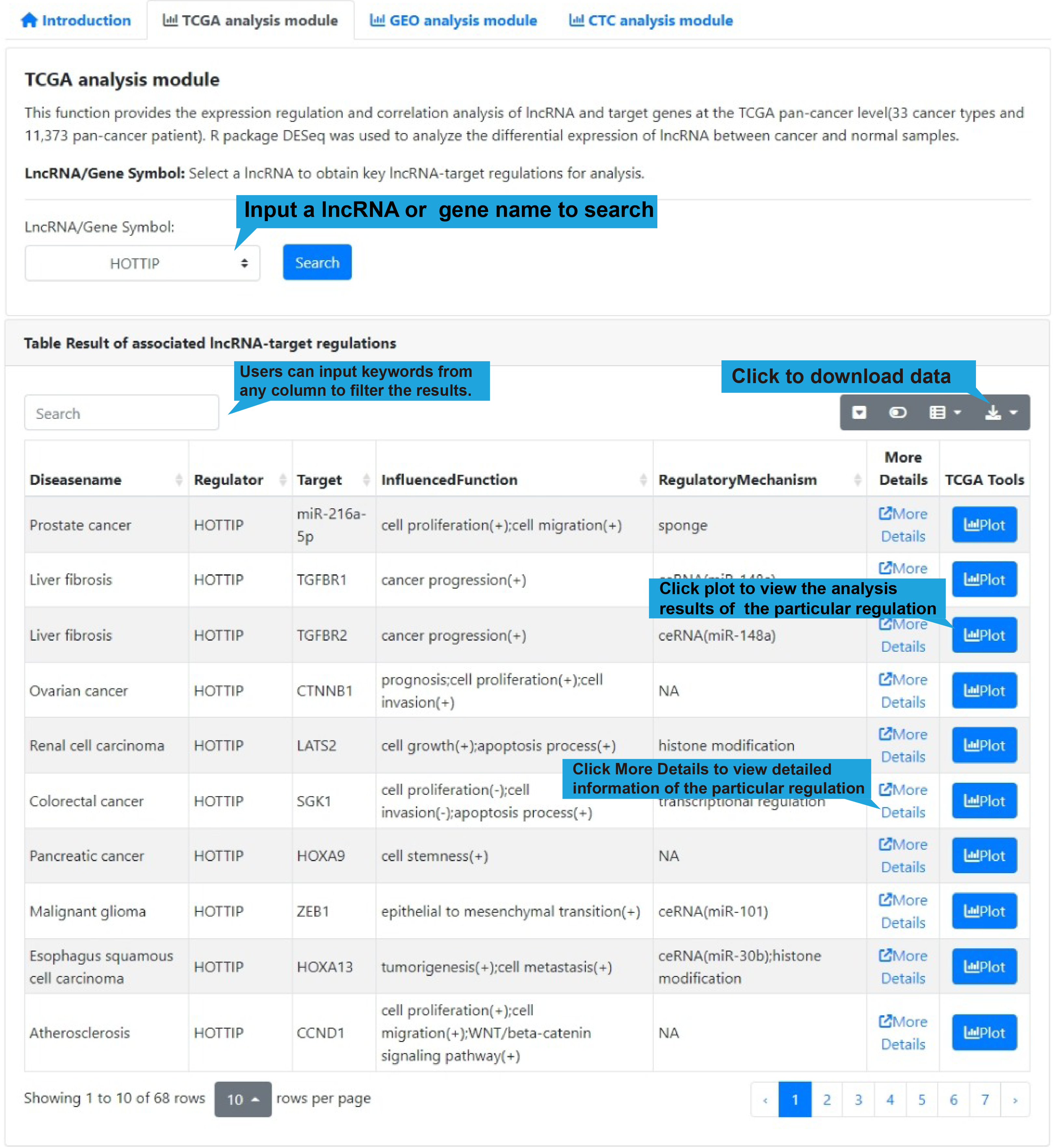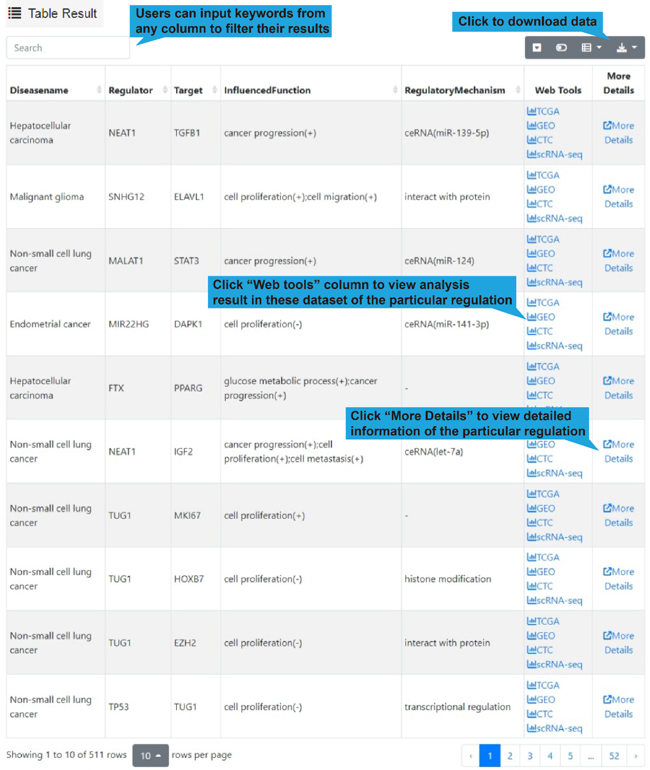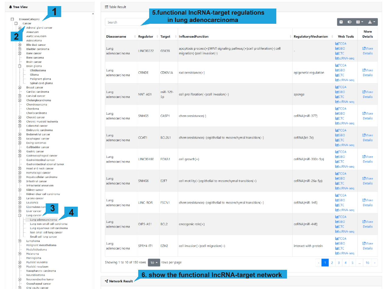 lncRNA-target regulation will be displayed on a new page. The results of the Web Tools