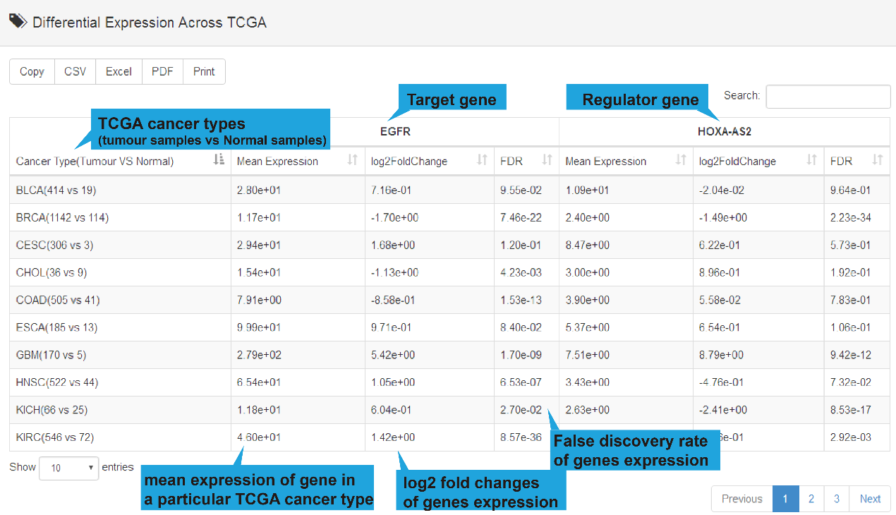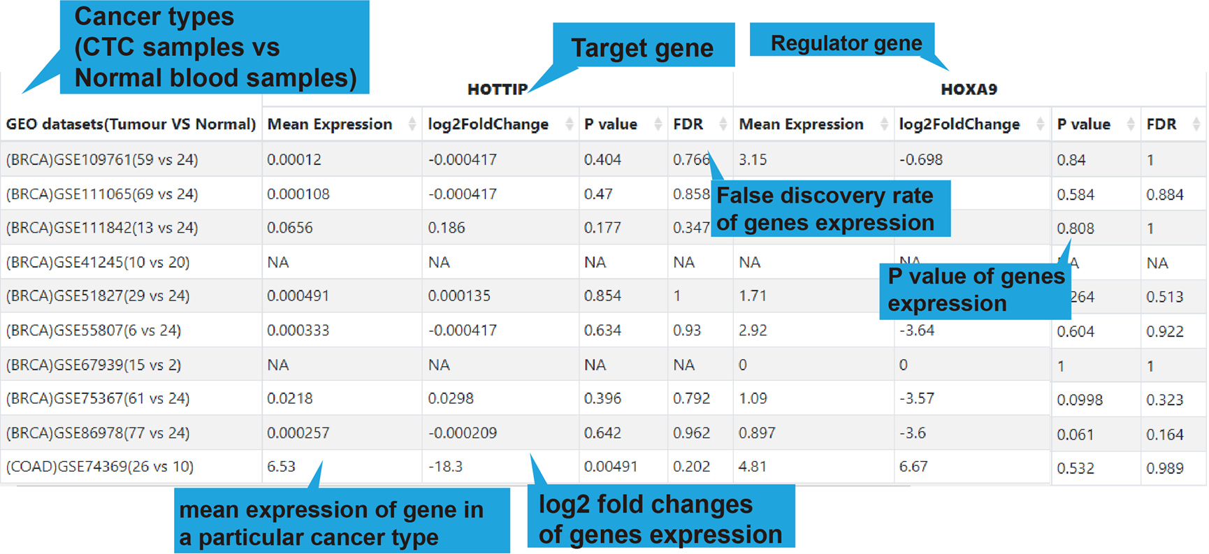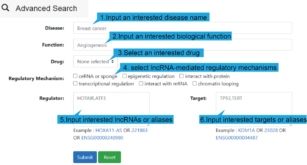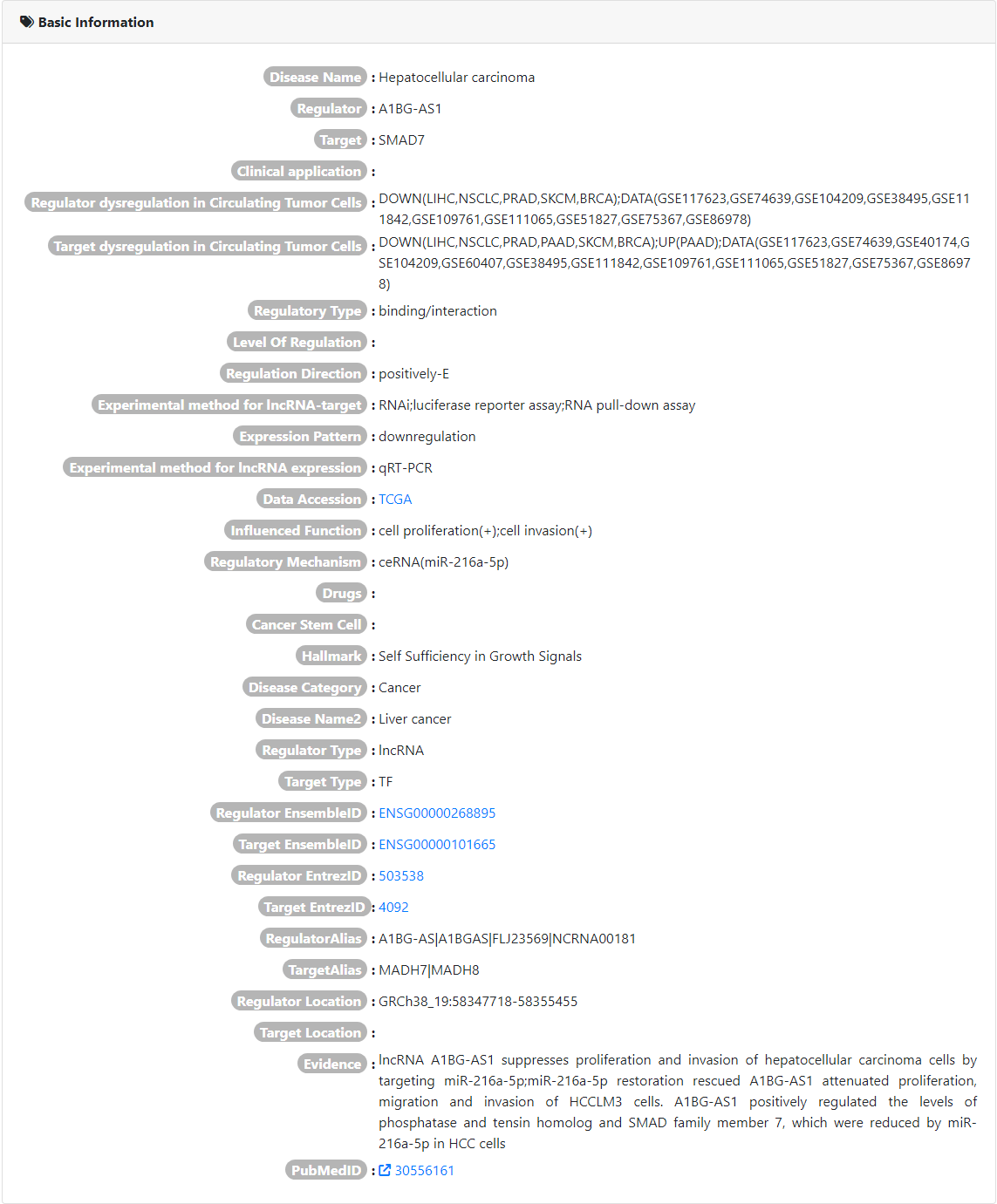 lncRNA-target regulation will be displayed on a new page. The results of the Web Tools