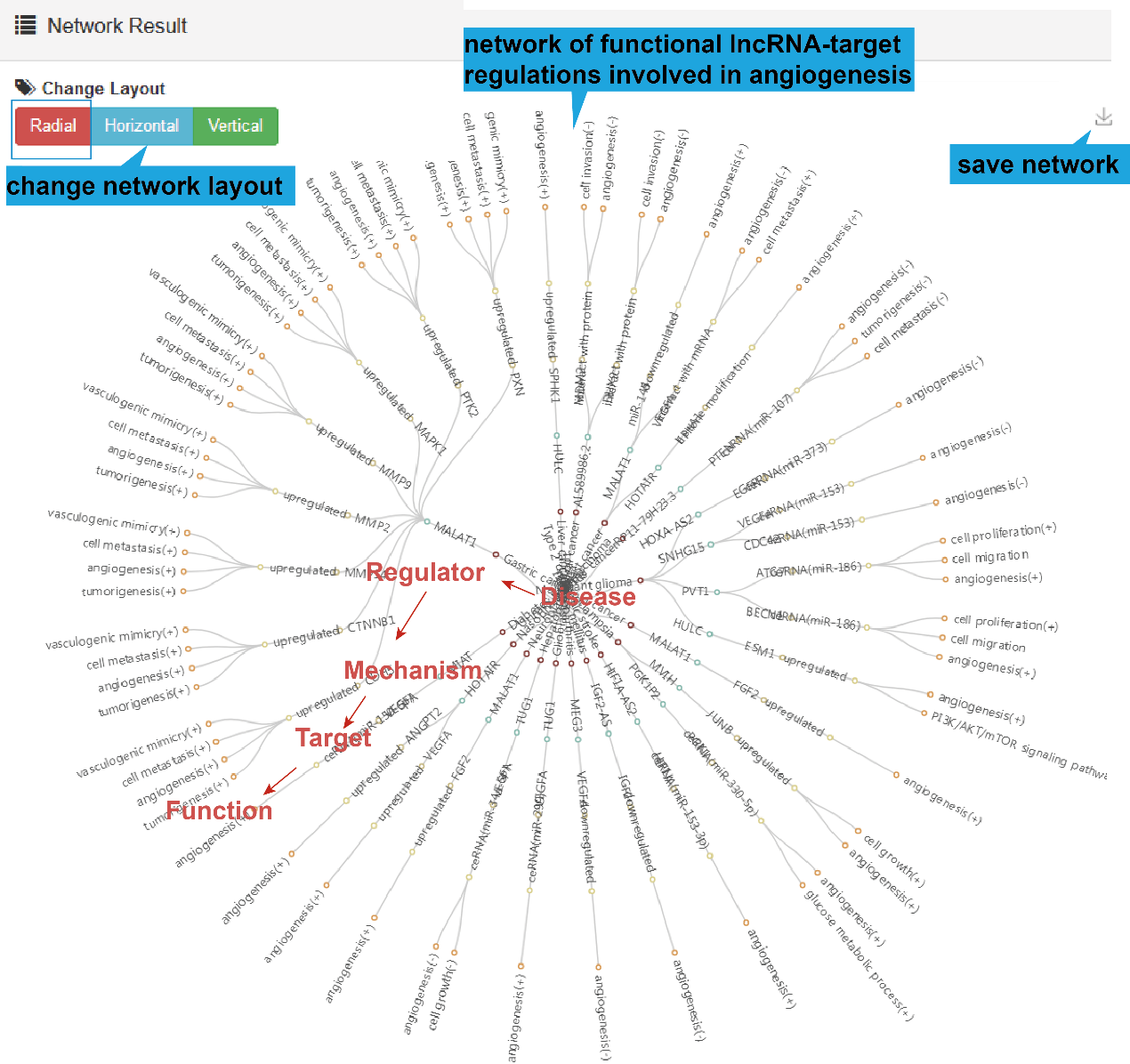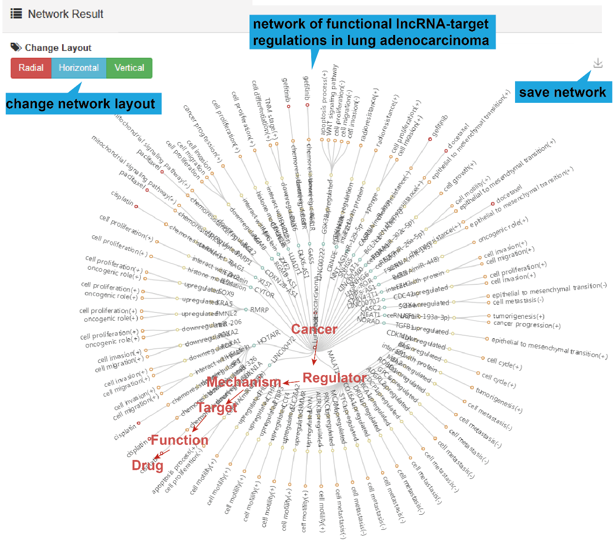 At the bottom of the table, users can show the functional lncRNA-target network based on