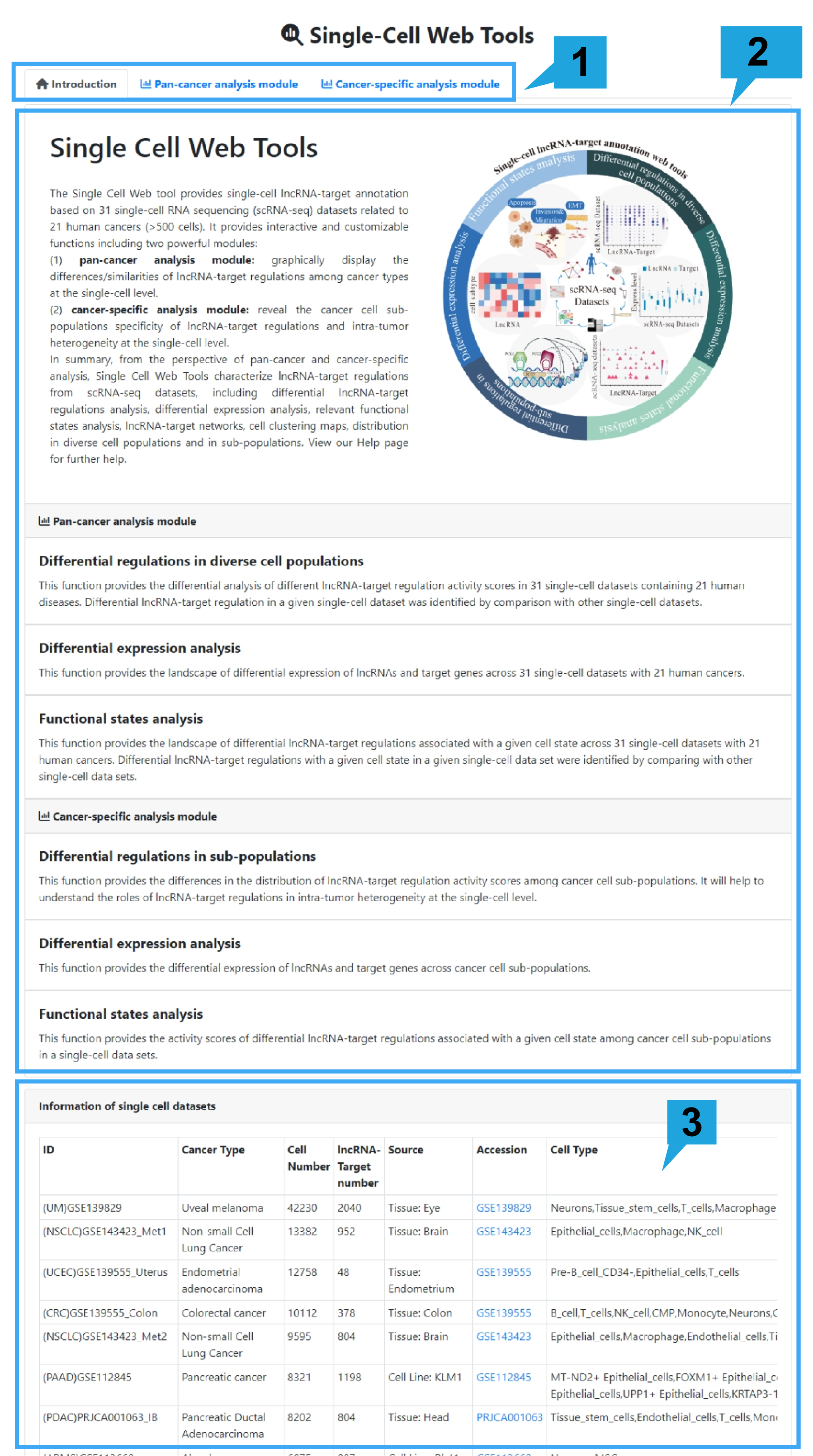2. Detailed introduction of main functions of Single Cell Web Tools.