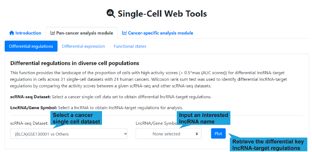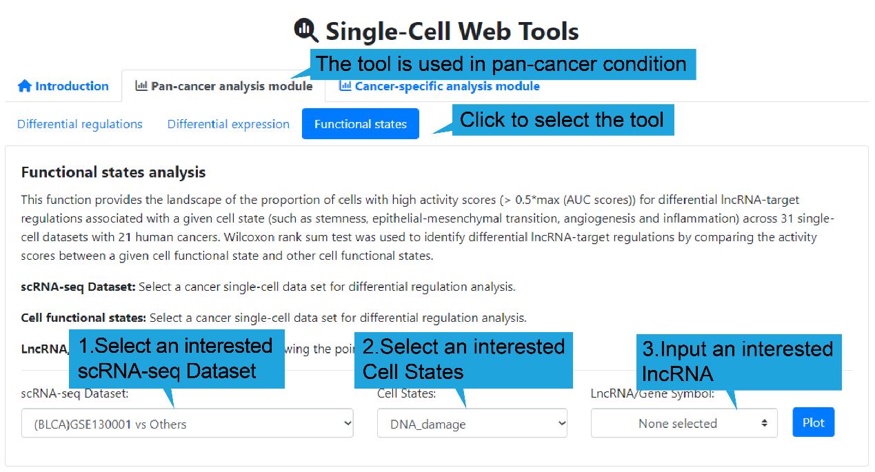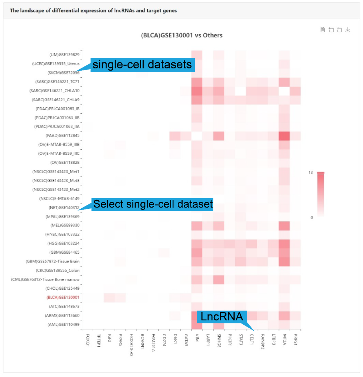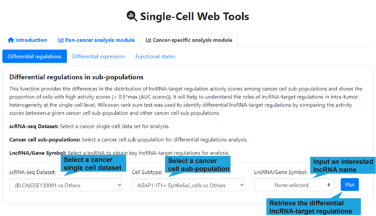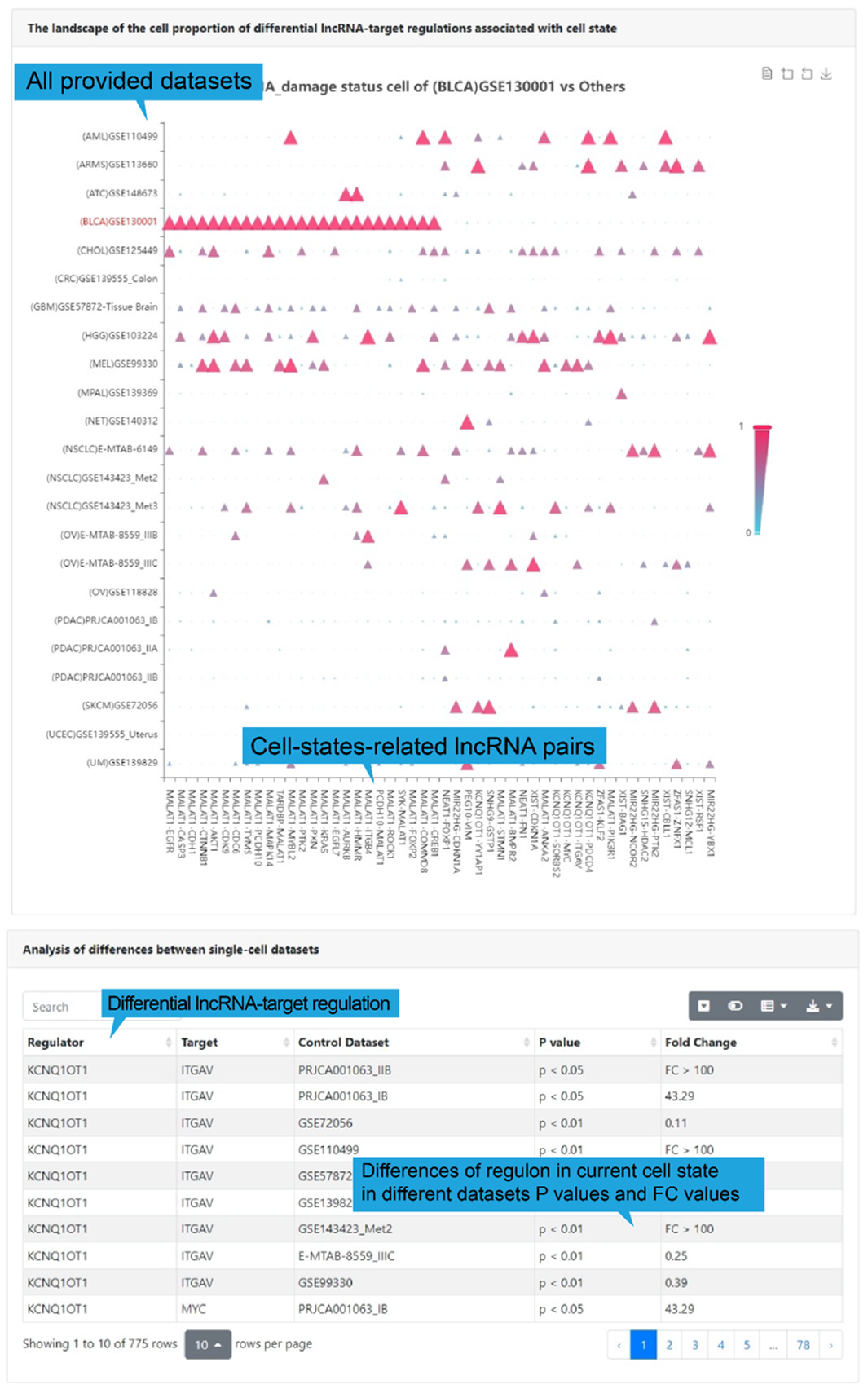 Then select a cancer single-cell dataset, a cell states and an interested lncRNA name,
