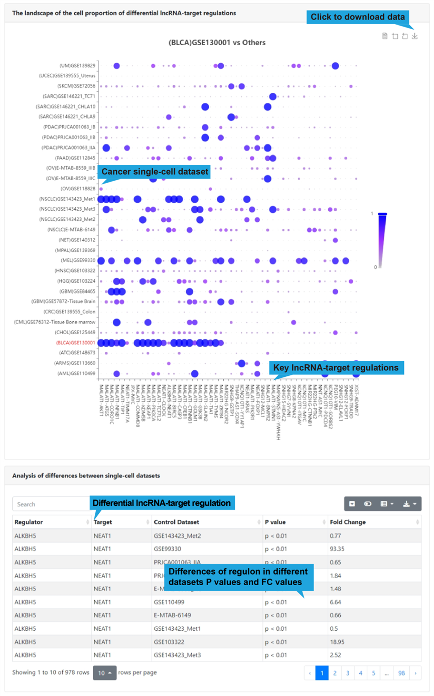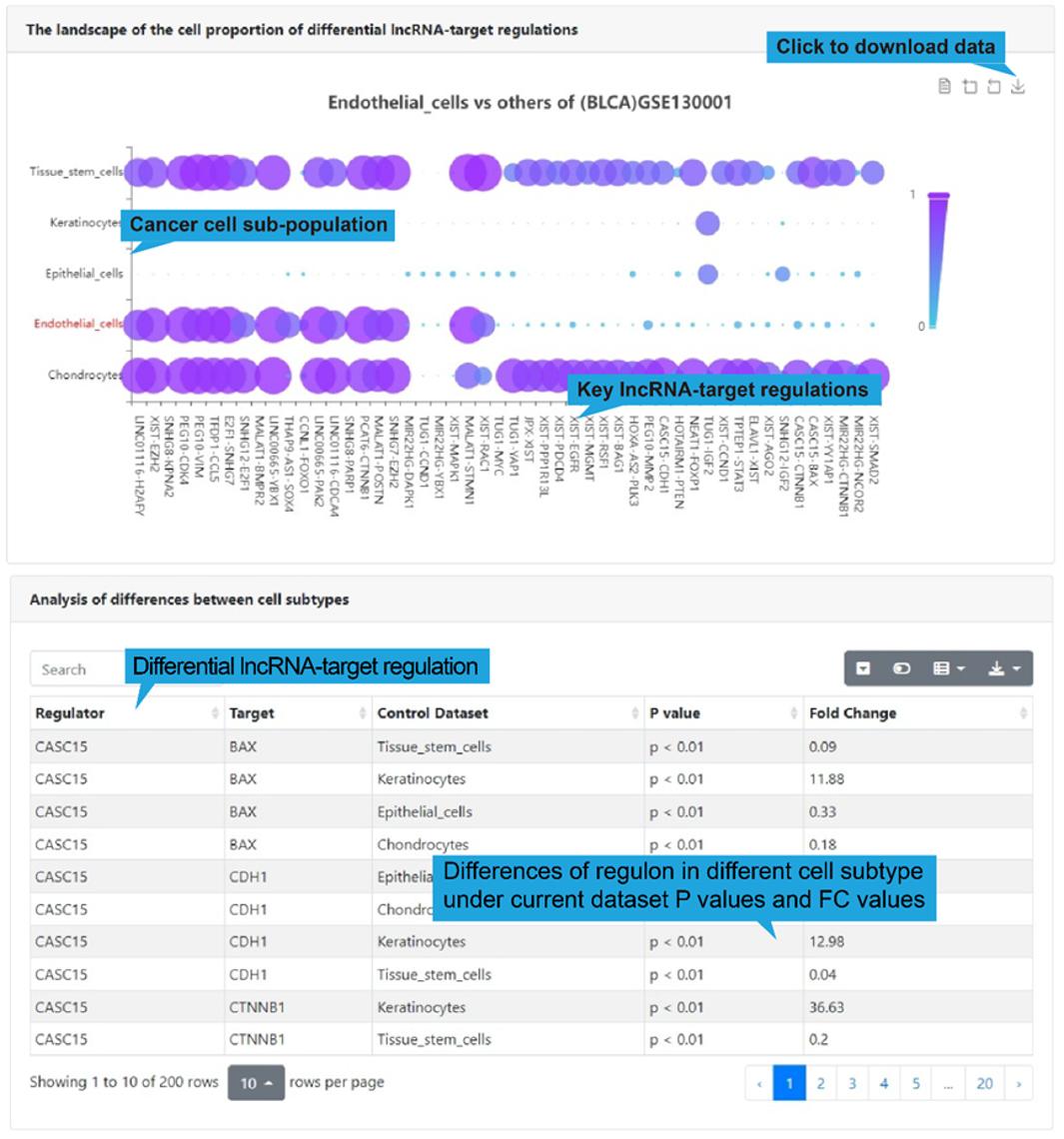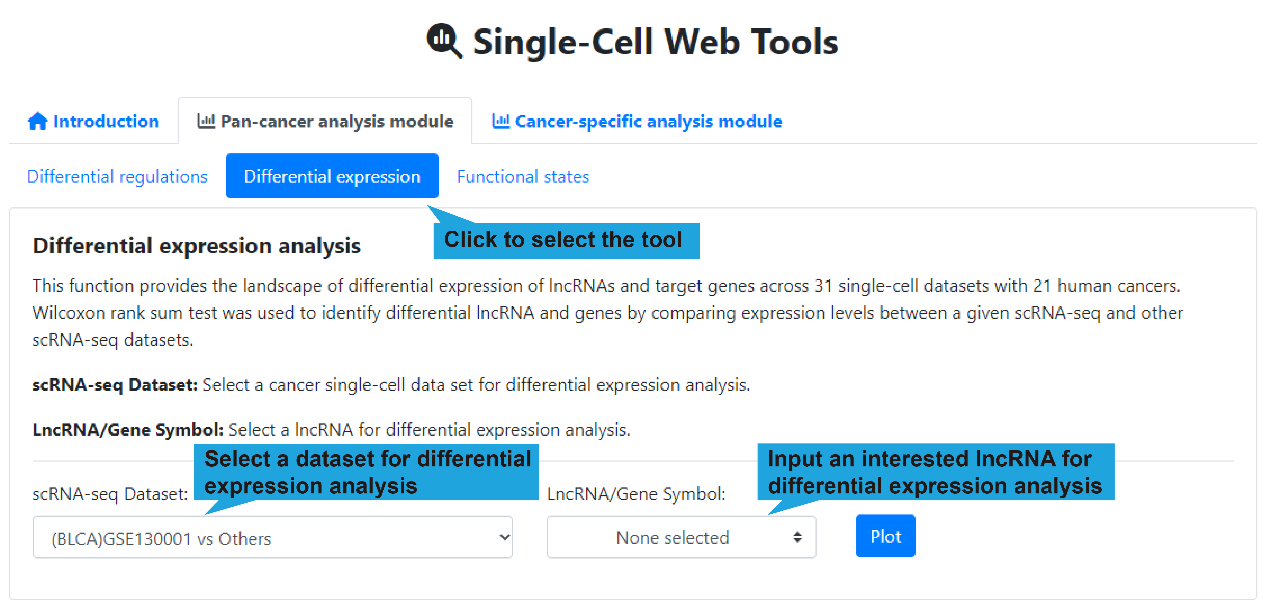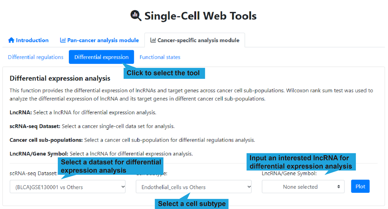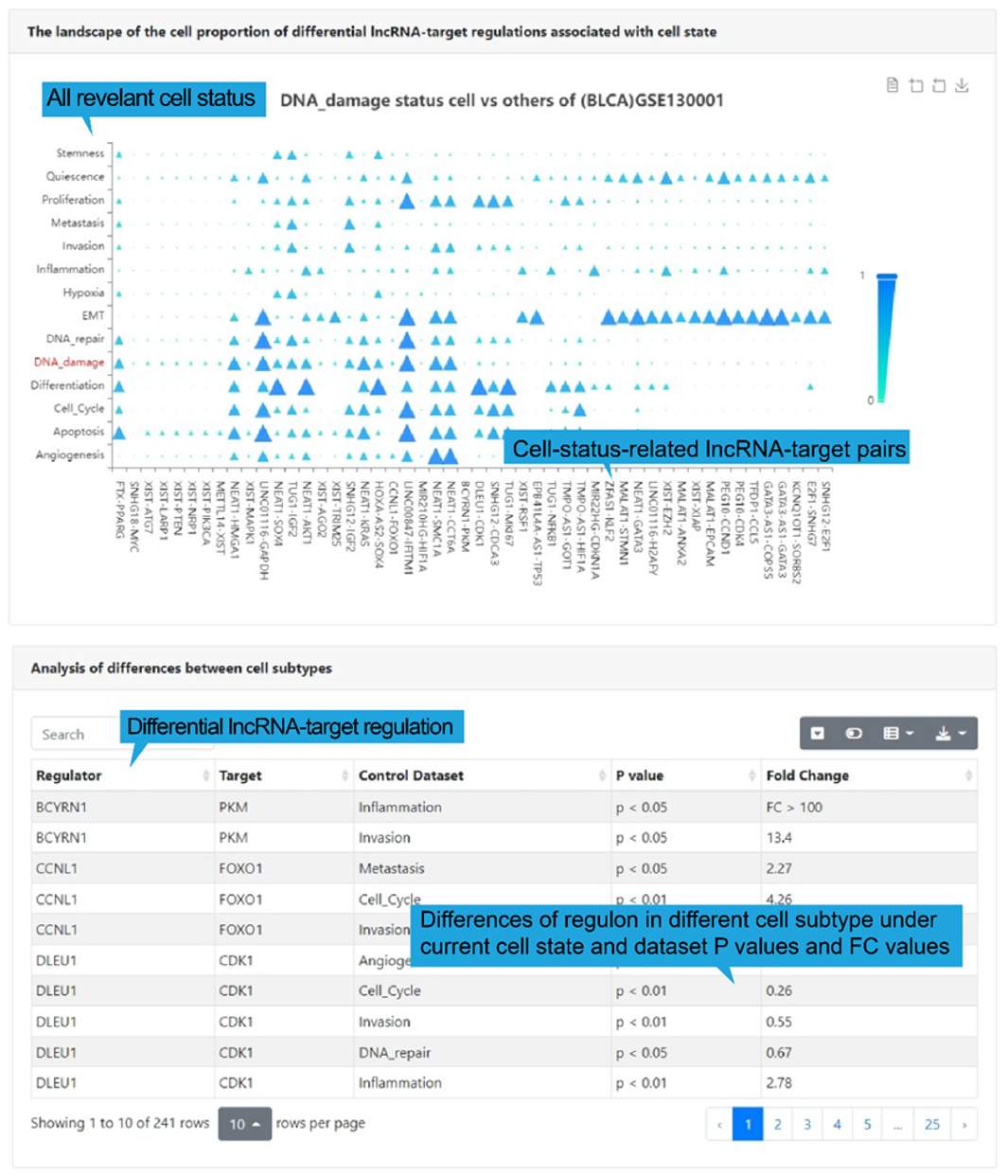 Then select a cancer single-cell dataset, a cell states and an interested lncRNA name,