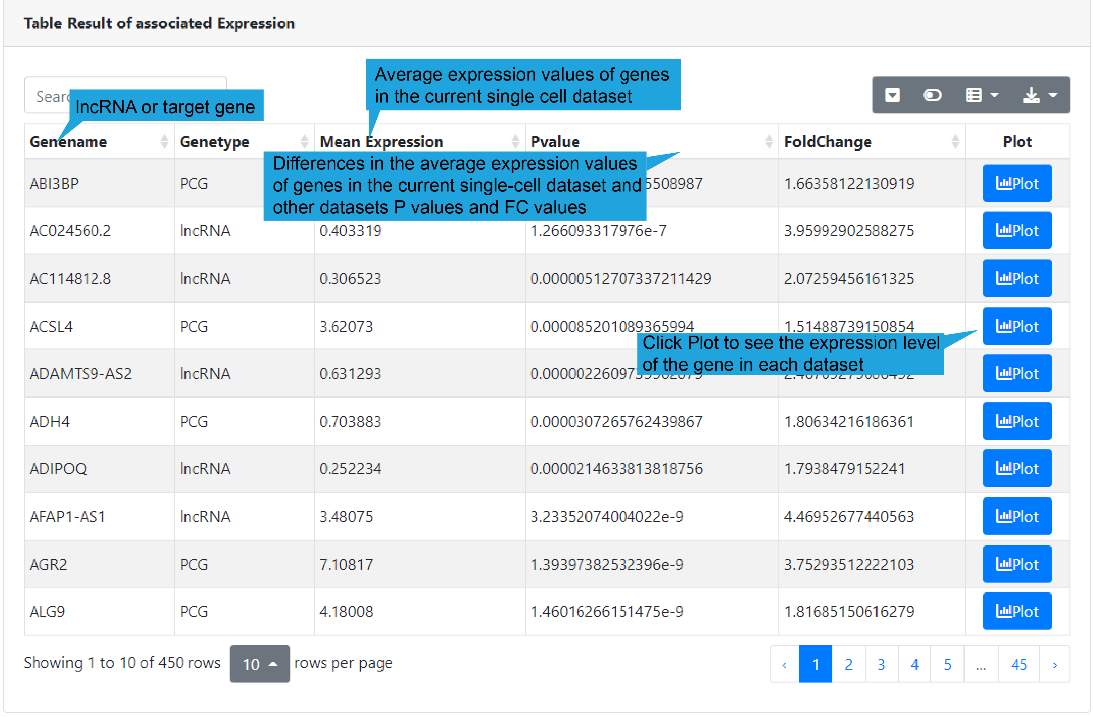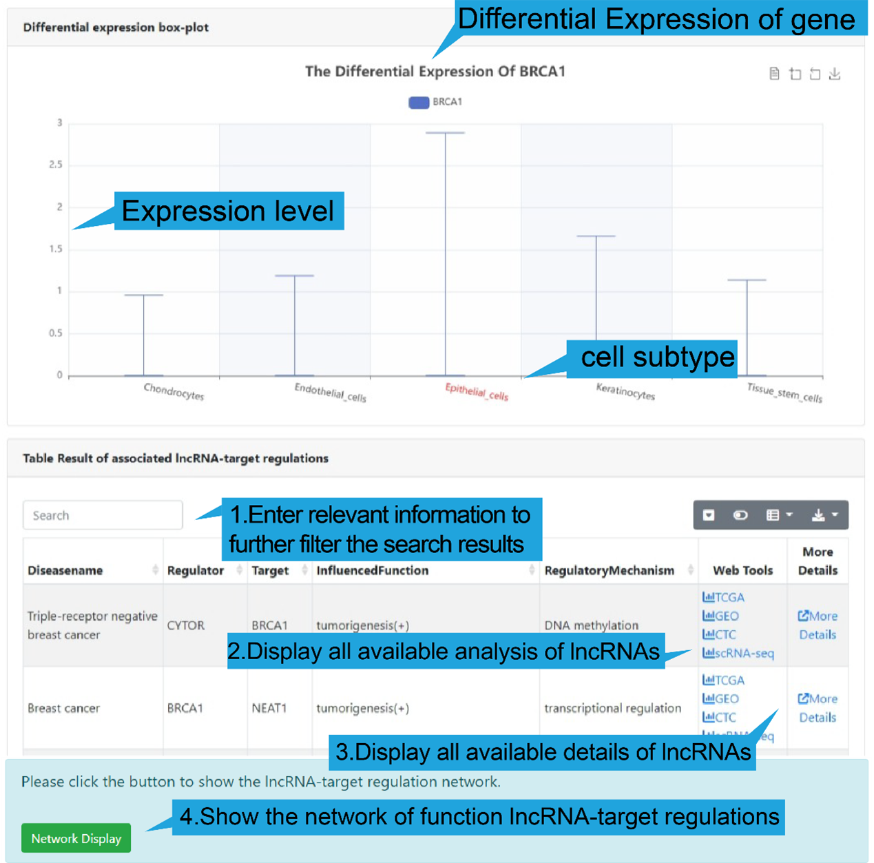 The figure below shows the details of the searched lncRNA. We provided a table, with a