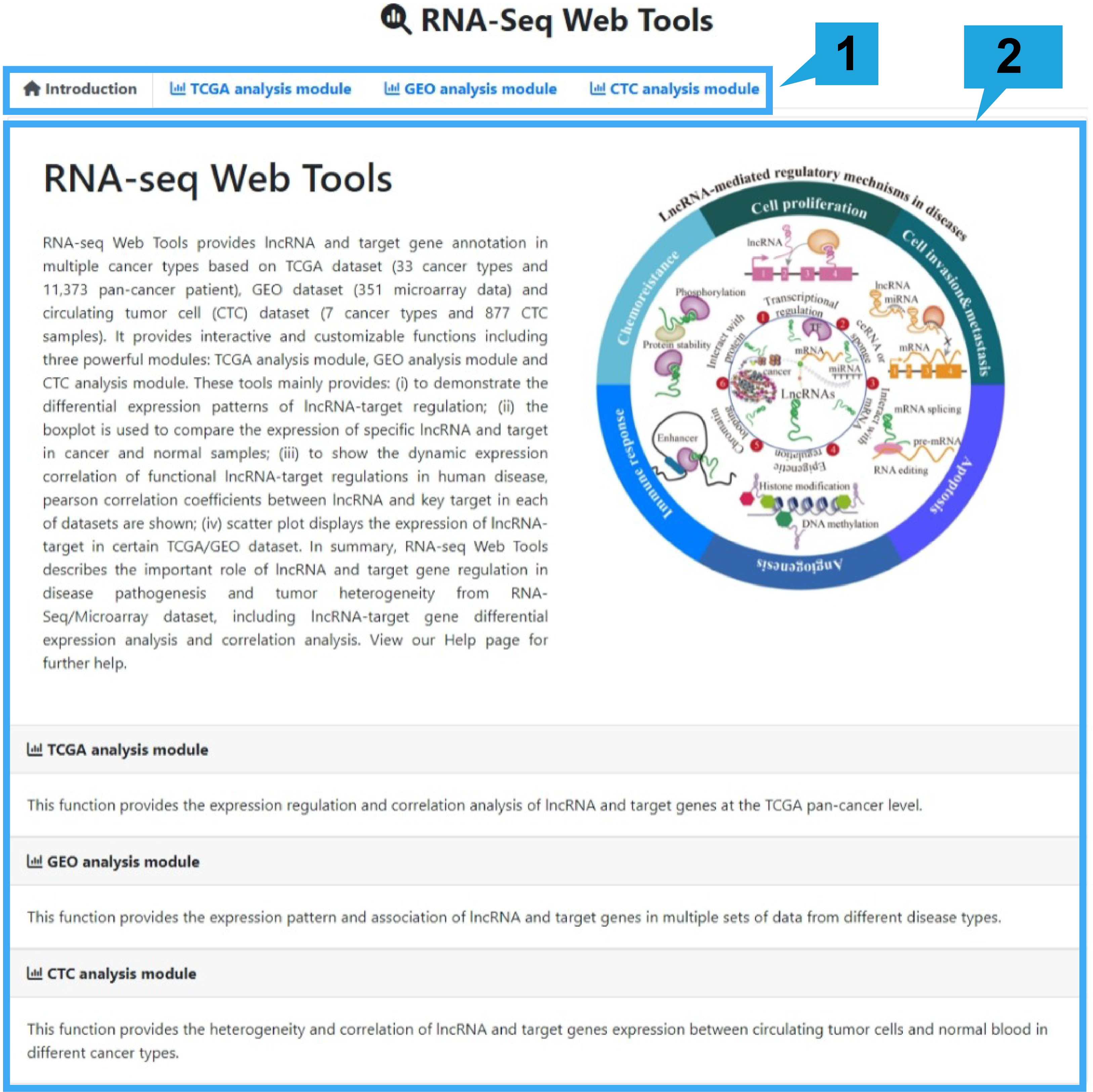 the upper left corner (step 1 in figure below) or click “Web Tools” to get more lncRNA