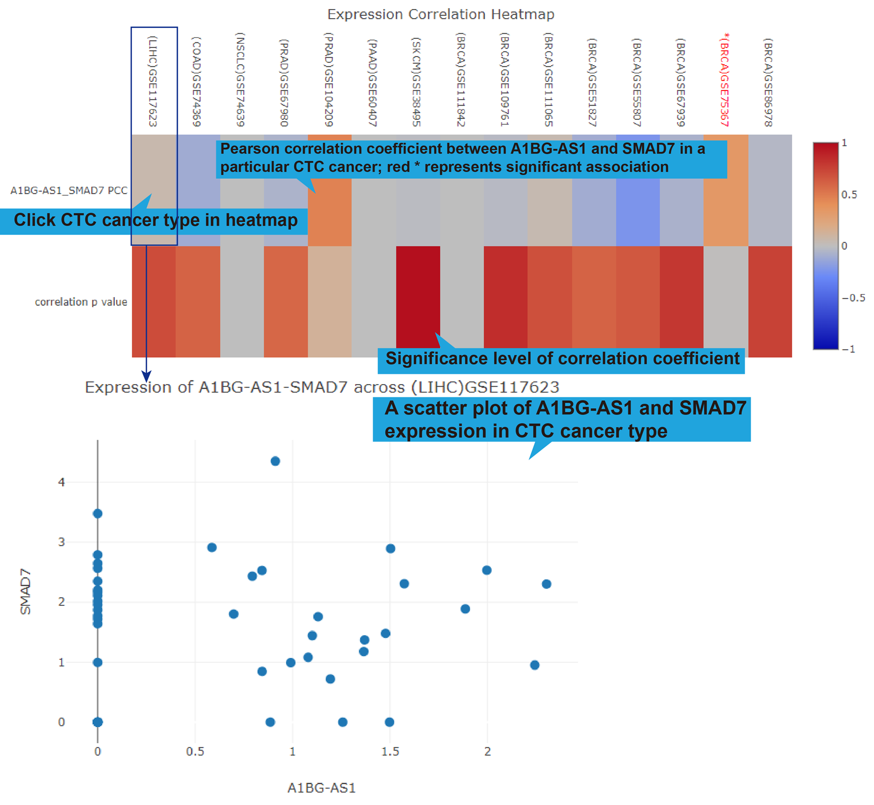 cancer cell sub-population and an interested lncRNA first, and then click the “Plot”